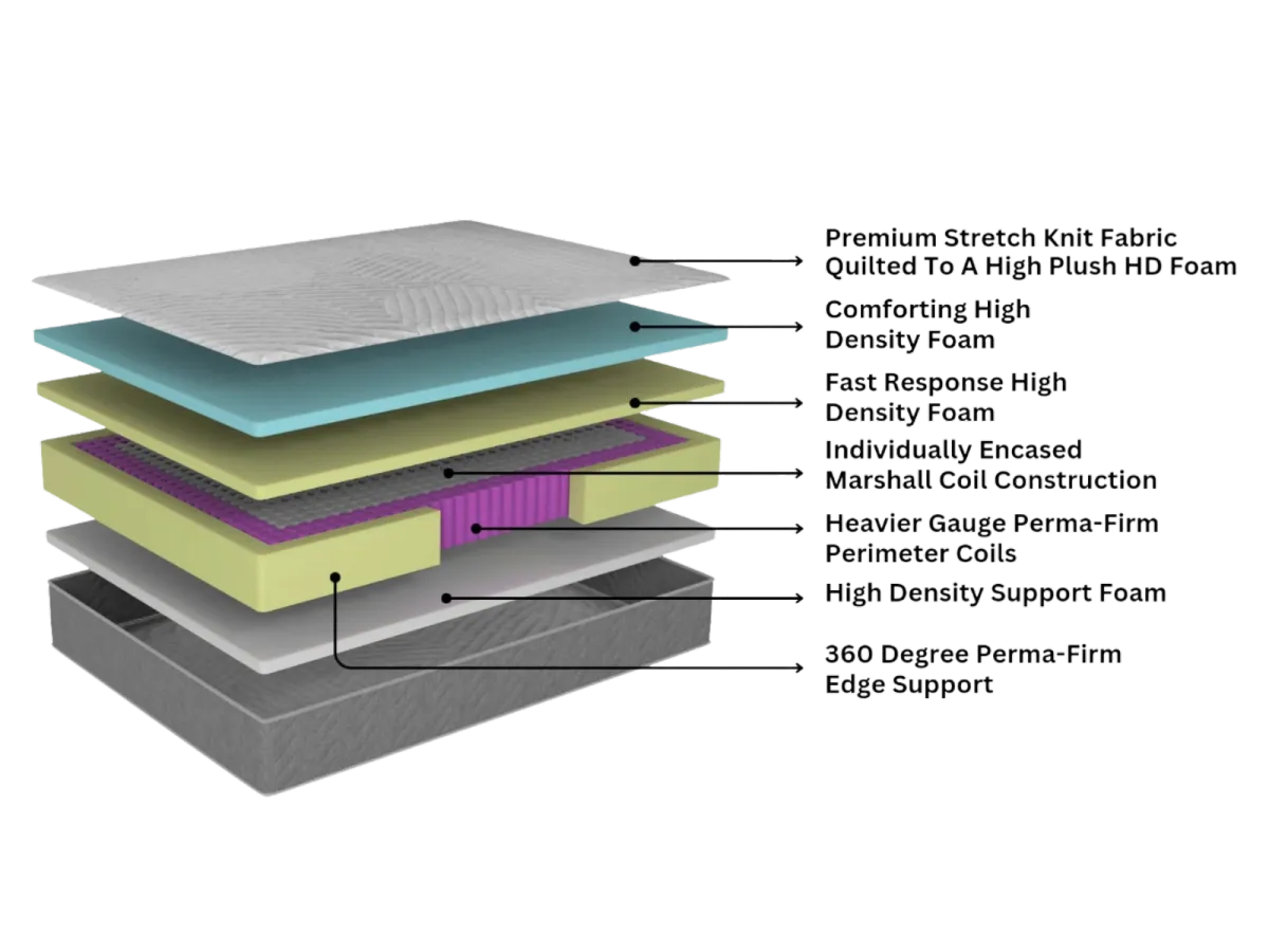 The Fairmont Mattress is one of our most popular with our hotel customers. This mattress features a premium soft stretch knit cover with premium medium-firm HD foam to give it a cushion-firm feel